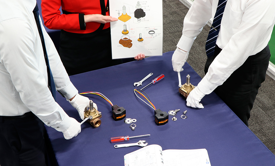 2階セミナー室で、講師の指導を受けながら製品の分解・組立を行い、実際に手に取ってバルブの構造(仕組み)が確認いただけます。